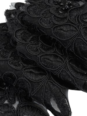 Yaya Han Corded Embroidered Lace Trim with Sequins and Beading – Black Fantasy Flowers, 3.5″ – Cosplay Collection