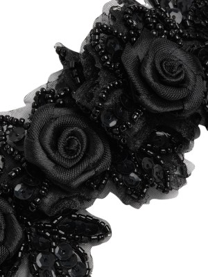 Yaya Han Beaded and Sequins Trim with 3D Roses – Black Floral, 2.5″ – Cosplay Collection