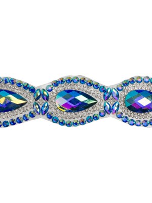 Yaya Han Iron-On Princess Crystal Rhinestone Trim – Iridescent Blue Outlined Teardrops, 1.375″ – Cosplay Collection