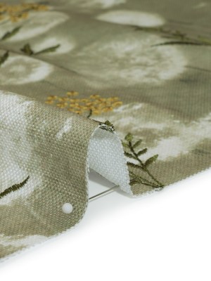 Cotton Canvas Print with Floral Embroidery – Ivy Tie Dye Spots – British Imported