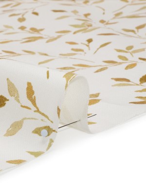 Printed Cotton Canvas – Ochre Leafy Stems – British Imported