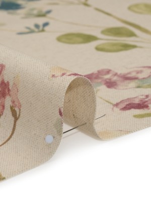 Printed Cotton and Linen Canvas – Heather Painterly Flowers – British Imported