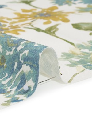 Printed Cotton and Linen Canvas – Azure Painterly Flowers – British Imported