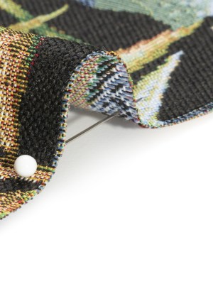 Black and Green Tropical Leaves Polyester and Cotton Jacquard
