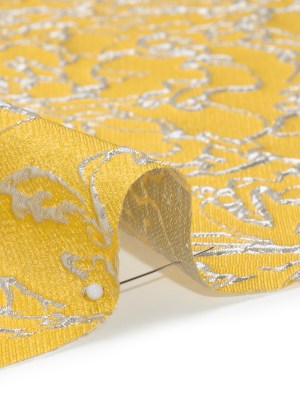 Metallic Luxury Brocade – Sunshine Yellow and Silver Floral Outlines
