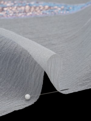 Metallic Luxury Burnout Brocade Panel – Sky Blue and Lilac Painterly Lily