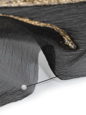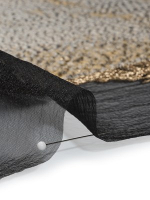 Metallic Luxury Burnout Brocade Panel – Black and Gold Painterly Lily