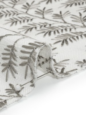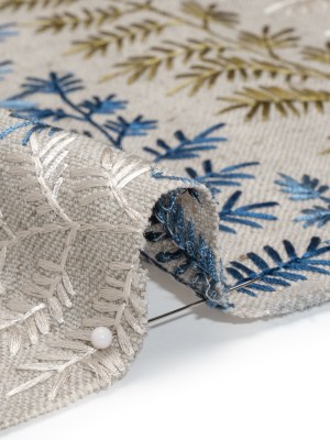 Embroidered Linen Blend Woven – Sea Pearl Leafy Plants – Attica Collection