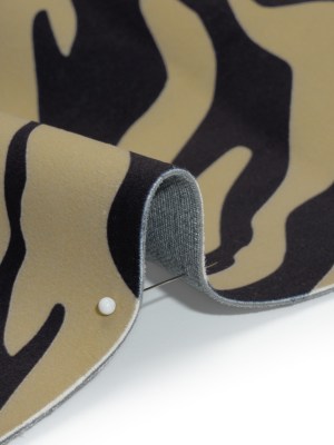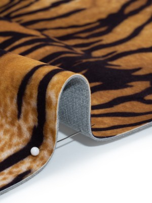 Upholstery Micro Velvet with Woven Backing – Black, Caramel and White Tiger Stripes