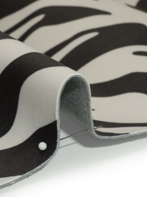 Upholstery Micro Velvet with Woven Backing – Black and Beige Zebra Stripes
