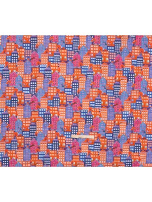 Cotton Voile – Purple, Orange and Blue Houses – Sunlit City Print – Mood Exclusive Chariot Collection