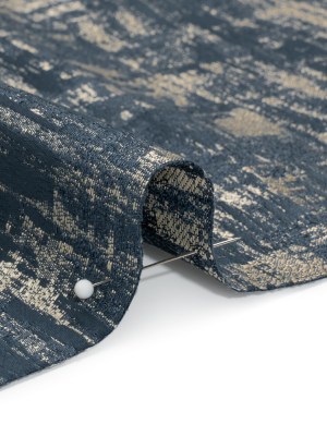 Recycled Polyester Drapery Jacquard – Indigo Abstract Strokes – British Imported