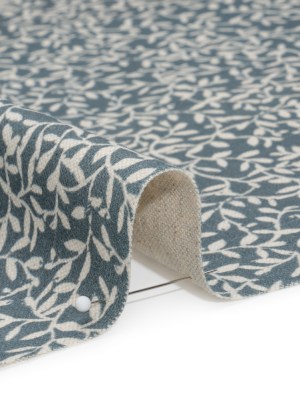 Brushed Cotton and Linen Canvas – Indigo Little Vines – British Imported