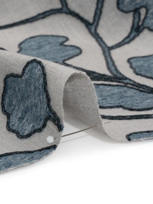 Denim Branches Corded and Embroidered Drapery Woven