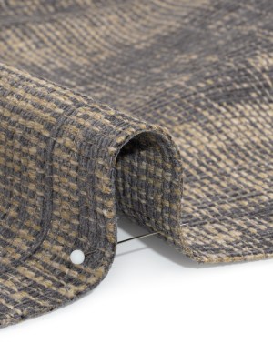 Pine Green and Beige Checked and Heathered Gray Cotton and Polyester French Terry