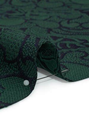 Hunter Green and Black Lace-Like Flowers Cotton and Polyester Jacquard