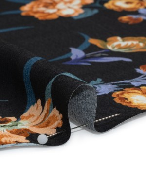 Viscose Crepe Print – Navy and Orange Floral – Mood Exclusive Chivalrous Designs
