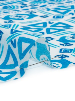 Mood Exclusive Blue Polygon Petals Cotton Crepe