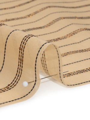 Famous Australian Designer Buff, Black and Metallic Copper Striped Cotton Voile