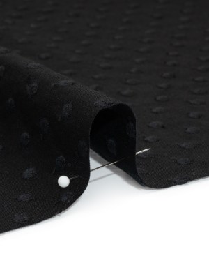 Famous Australian Designer Black Textured Burnout Polka Dots Silk and Viscose Georgette