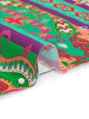 Viscose Crepe Print – Green, Turquoise and Purple Floral and Paisley Stripes – Mood Exclusive April in Patterns