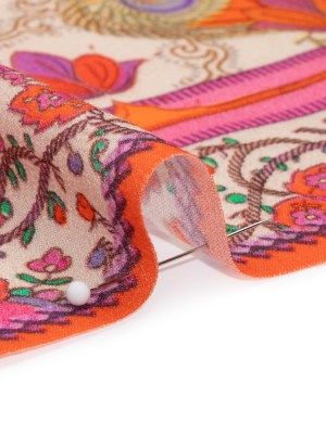 Viscose Crepe Panel – Red, Pink and Orange Fancy Leaves – Mood Exclusive Peacock Gardens