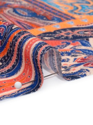 Viscose Crepe Panel – Orange, Blue and Rust Red Decorative Stripes – Mood Exclusive Desert Dance