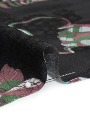 Floral Viscose Jacquard Print – Black, Blue and Red Camping Icons – Mood Exclusive Friend of Fern