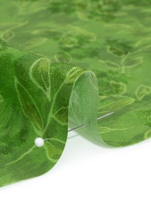 Floral Viscose Jacquard Print – Grass Green Tie Dye and Leaves – Mood Exclusive Little Sprigs