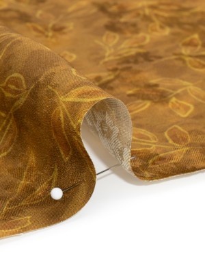 Floral Viscose Jacquard Print – Brown Tie Dye and Leaves – Mood Exclusive Little Sprigs