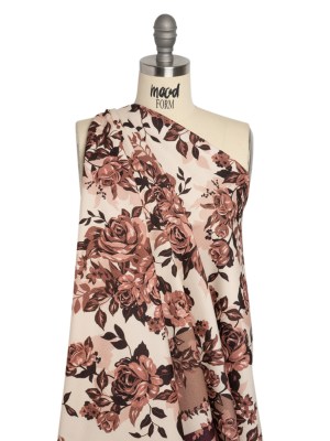 Brushed Stretch Cotton Twill Panel – Wine and Cream Roses – Mood Exclusive Space for Grace