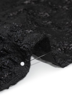 Shimmering Black Bubbly Crinkled Organza Brocade