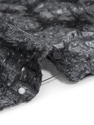 Black Iridescent Shimmer Bubbly Crinkled Organza Brocade