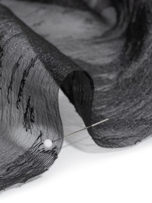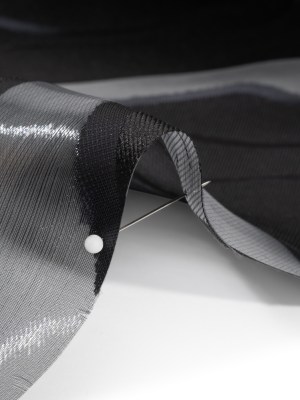 Metallic Gunmetal and Black Flowing Lines Luxury Burnout Brocade