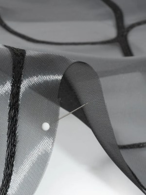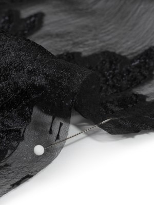 Metallic Black Flower Lines Luxury Burnout Brocade