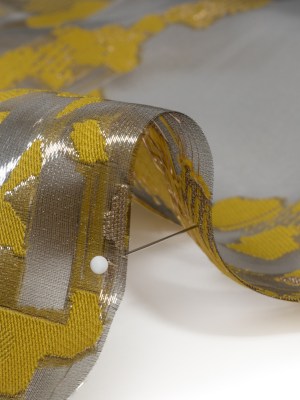 Yellow and Black Metallic Abstract Luxury Burnout Brocade