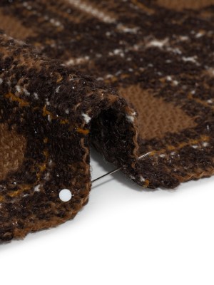 Brown, White and Metallic Black Boucle Plaid Wool Blend Tweed