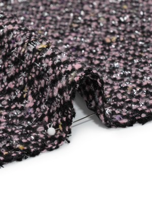 Light Pink, Black and Silver Metallic Fringe Acrylic Boucle Woven