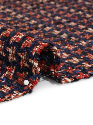Navy, Red and Metallic Gold Houndstooth Chenille Fringe Tweedy Acrylic Woven