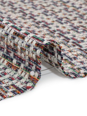 Pink, Black and White Checked Cotton and Acrylic Tweed