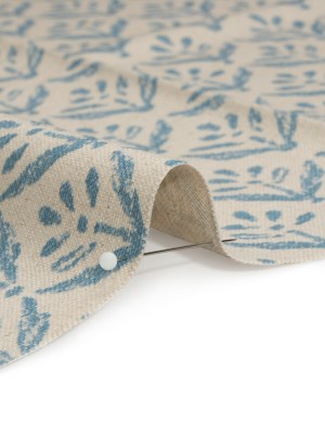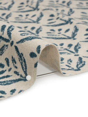 Cotton and Linen Canvas Print – Indigo Leaf Motif – British Imported