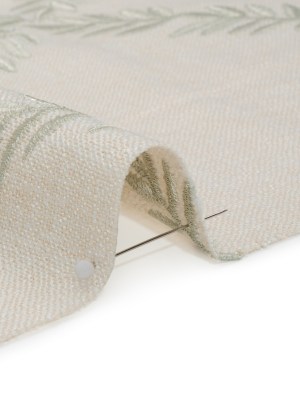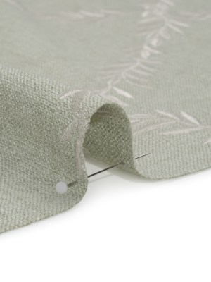 Embroidered Slubbed Drapery Woven – Sage Leafy Lattice – British Imported