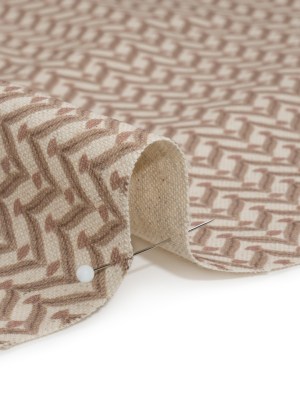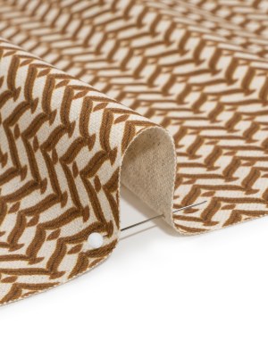 Cotton and Linen Canvas Print – Bronze Leafy Chevrons – British Imported