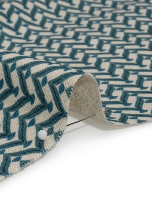 Cotton and Linen Canvas Print – Ocean Leafy Chevrons – British Imported