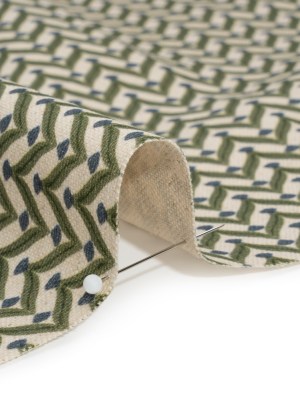 Cotton and Linen Canvas Print – Aegean Leafy Chevrons – British Imported