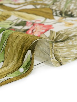 Famous Australian Designer Beige, Pink and Blue Floral Tapestry Stretch Polyester Jersey