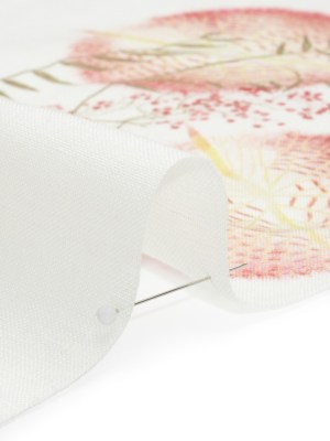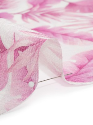 Pink and White Leaves Medium Weight Linen Woven