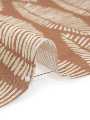 Brown and Cream Feather Leaves Medium Weight Linen Woven