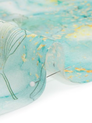 Dark Aqua and Sunshine Floating Ginkgo Leaves Medium Weight Linen Woven