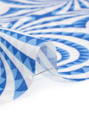 Blue, White and Palest Pink Spiralling Tunnels Medium Weight Linen Woven